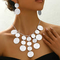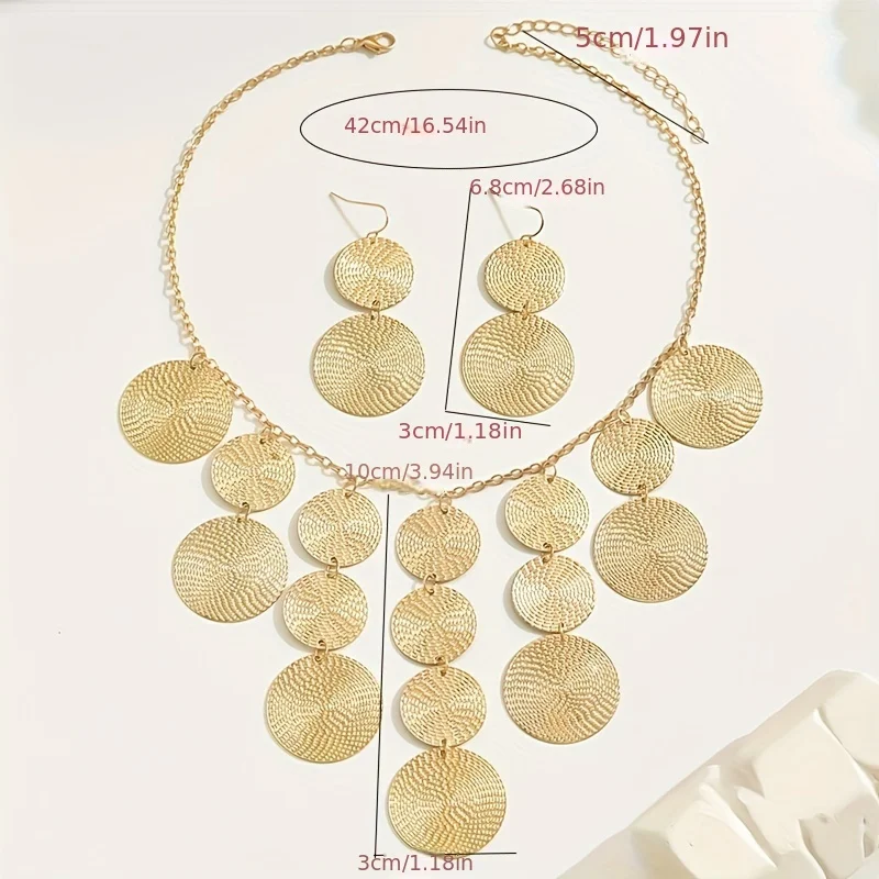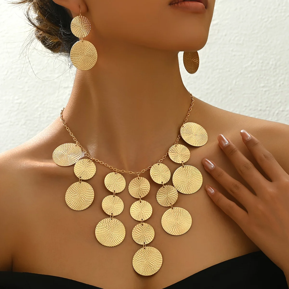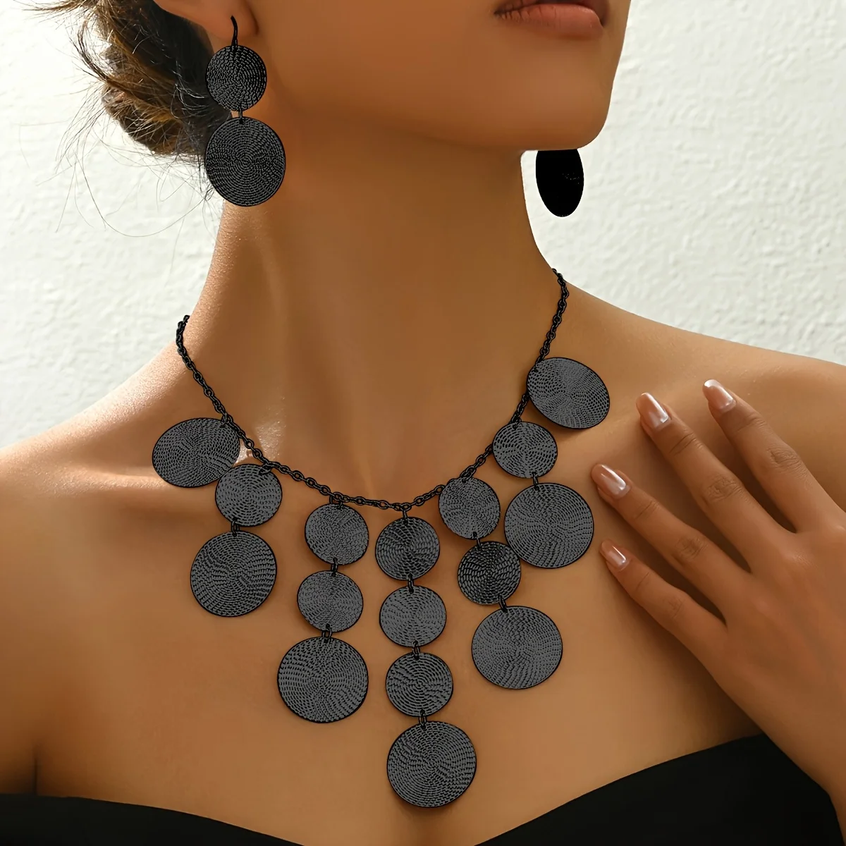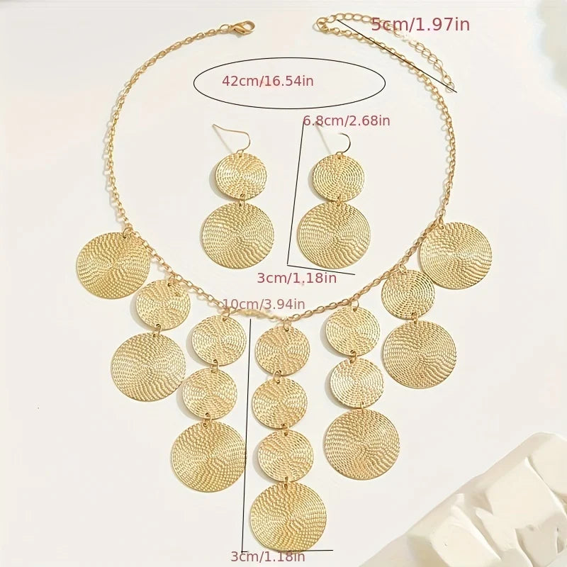 Lxalry Handmade Platinum-Plated Disc Jewelry Set – Boho Modern Necklace & Earrings for Daily & Evening Wear