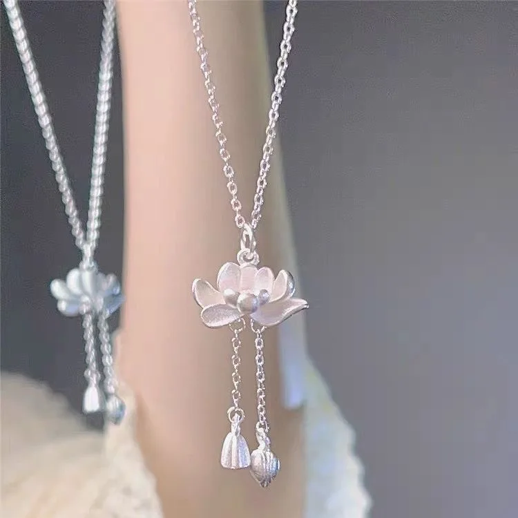 Lotus Tassel Necklace for Women – Elegant Good Luck Lotus Pendant, New Popular Chinese Style Jewelry