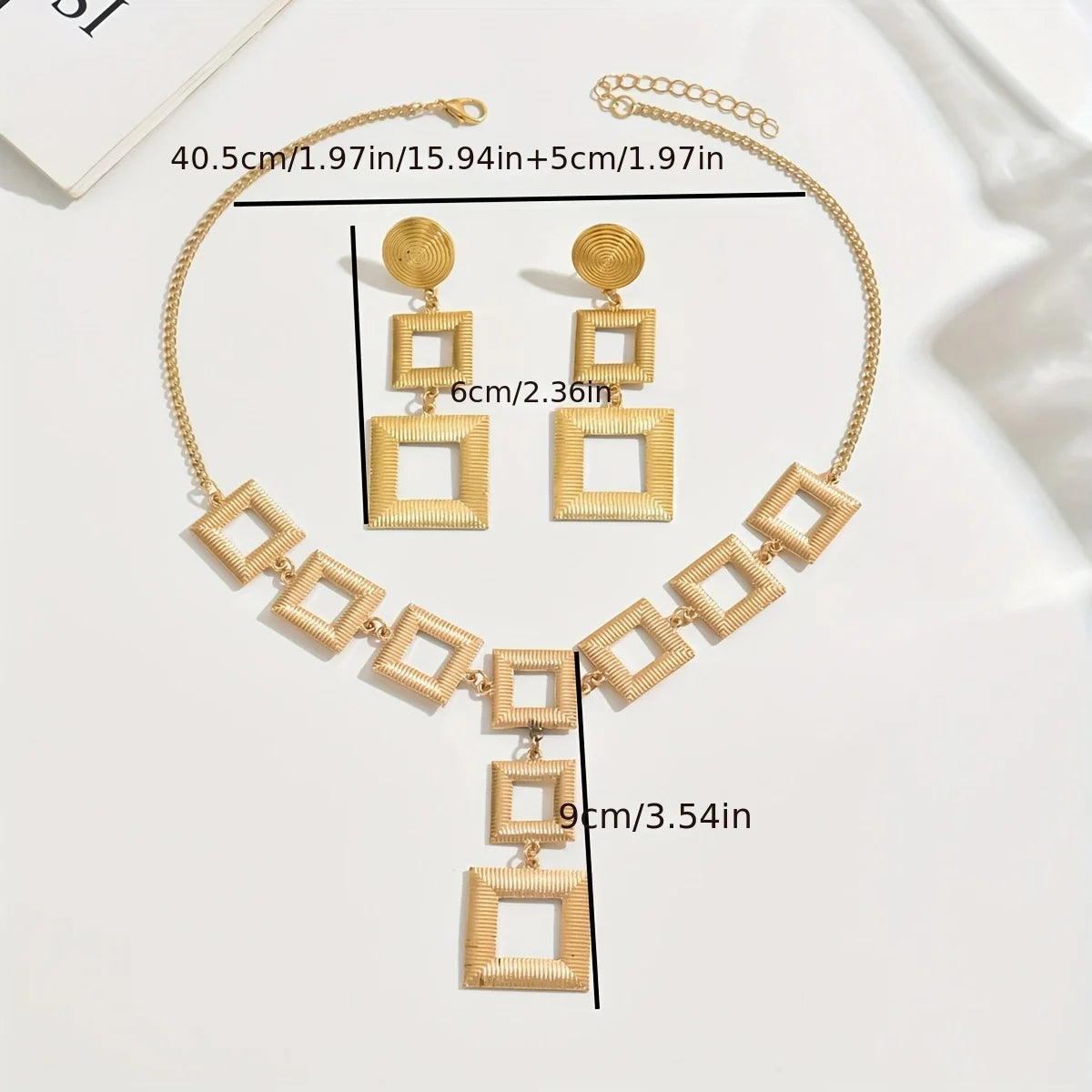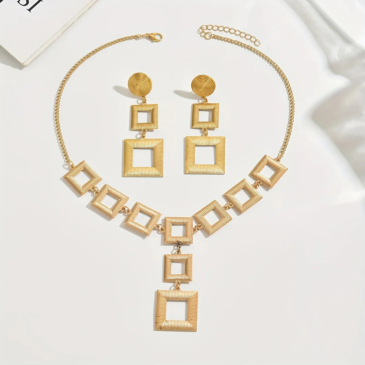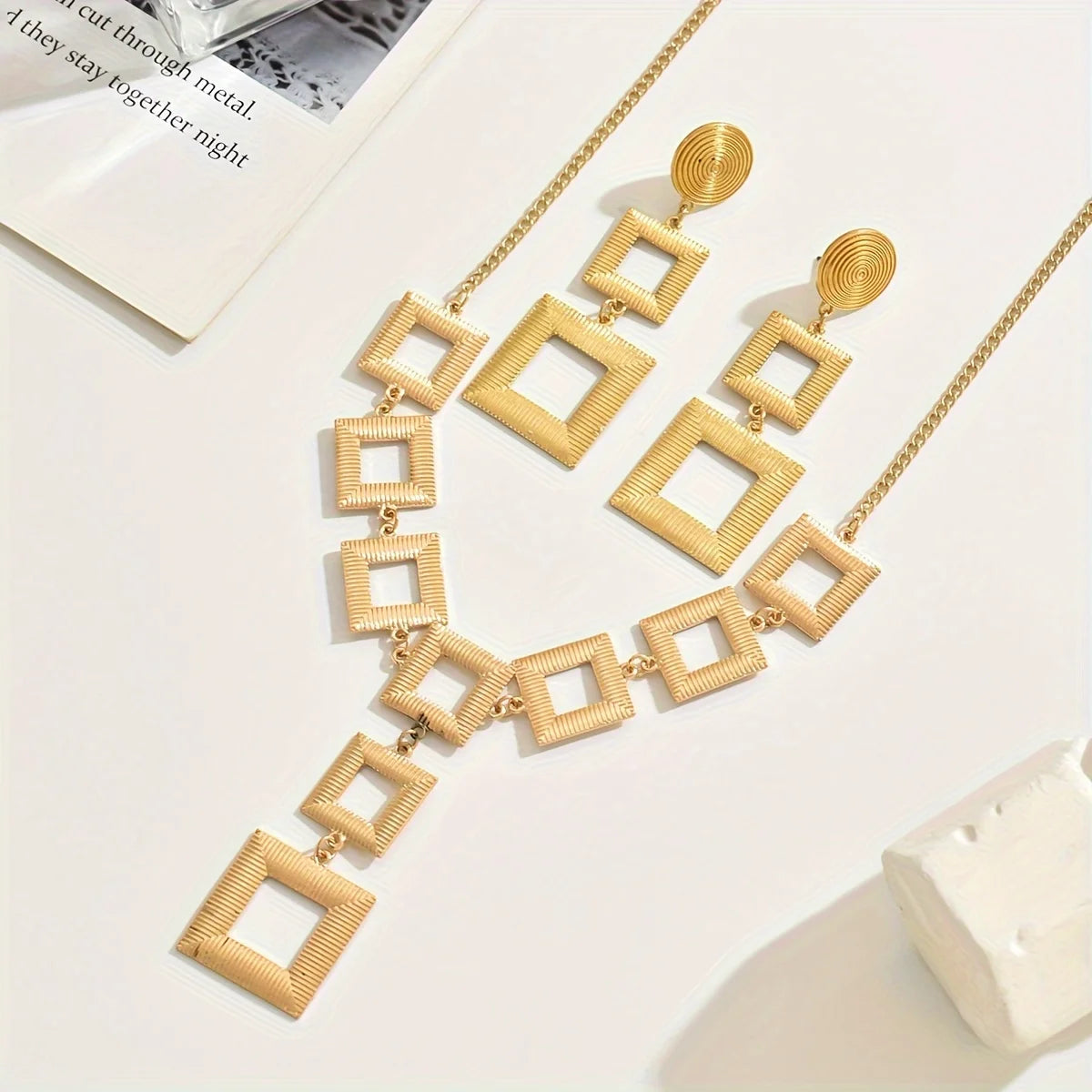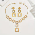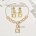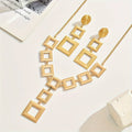 Add modern elegance to your look with this handcrafted 14K gold electroplated jewelry set from Lxalry. Featuring a bold geometric square design, this set includes a stunning necklace and matching earrings—perfect for elevating your everyday style or complementing evening wear. Crafted with hypoallergenic 316L materials and sustainable practices, it offers both beauty and peace of mind.