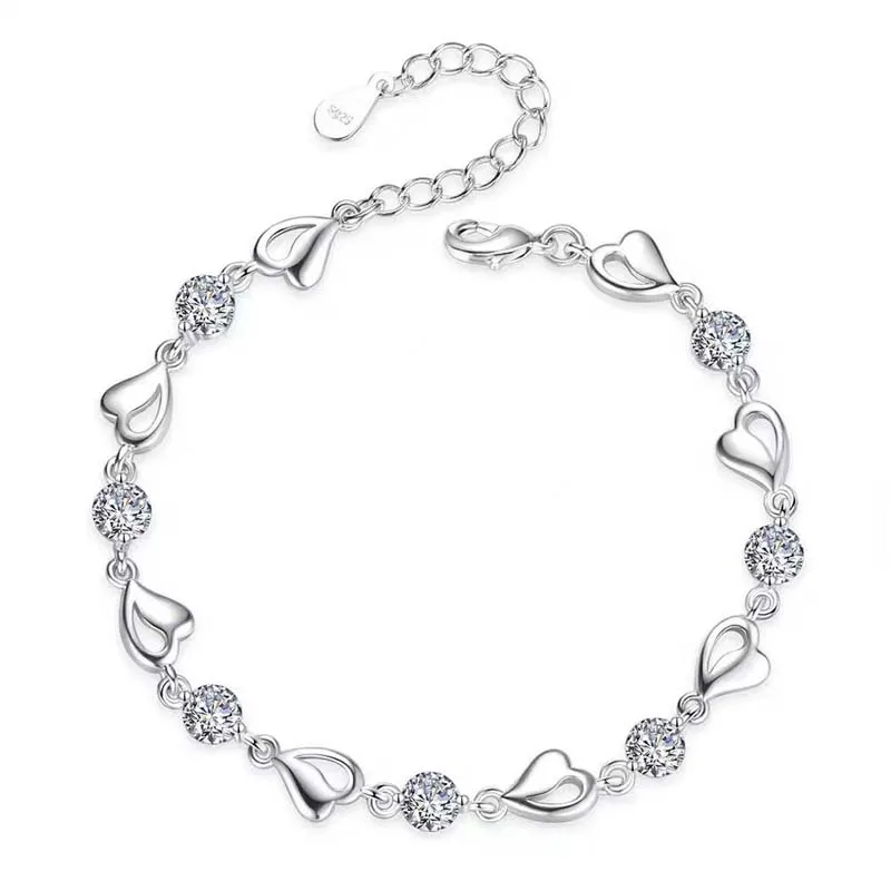 Silver Blue Zircon Lovers Bracelet – Heart Shaped Crystal Charm for Women